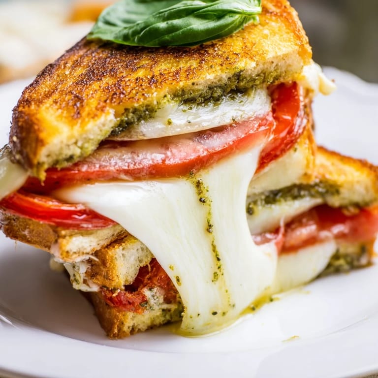Pin It The first time I made this sandwich was during a summer afternoon when my garden basil was exploding. I had tomatoes ripening on the windowsill and fresh mozzarella from the farmers market, and suddenly a regular grilled cheese felt like a wasted opportunity. The smell of pesto hitting the warm bread filled my entire kitchen. Something about that combination changed how I think about grilled cheese forever.