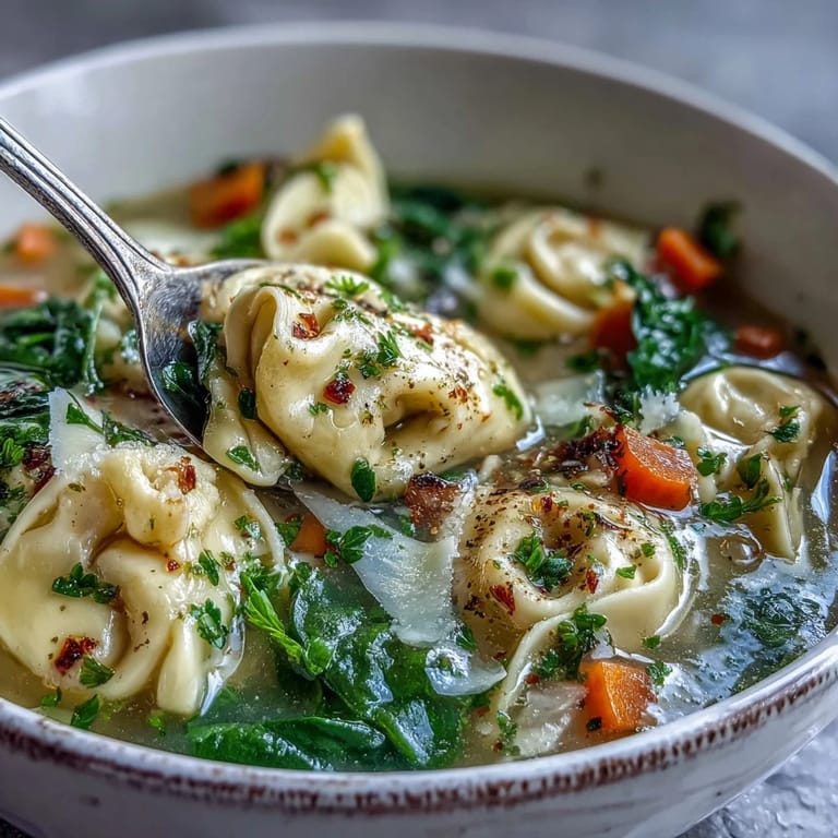 Pin It I remember staring at a half empty fridge on a rainy Tuesday wondering how to feed four hungry people without a grocery run. This tortellini soup came together from the depths of my pantry and a few lonely carrots in the crisper drawer. The kitchen filled with a warm herbal aroma that immediately settled my nerves after a long day. It felt like a small miracle when everyone actually asked for seconds. Now it is my go to remedy for whenever the weather turns gray and the house feels a bit too quiet.