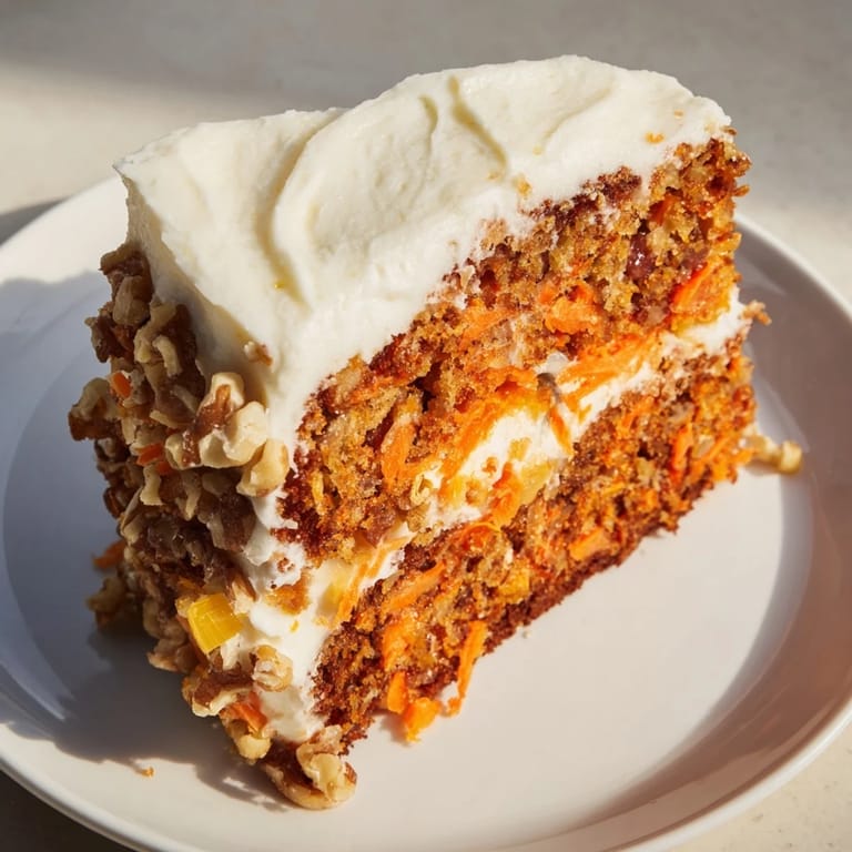 Pin It My grandmother's kitchen always smelled like cinnamon and wet carrots on Sunday afternoons, and I spent years watching her grate carrots by hand before finally understanding why this cake became the thing everyone requested. The first time I made it myself, I was surprised by how the oil keeps everything impossibly moist—not dense, just tender in a way that makes you take another bite before you've swallowed the first. That cream cheese frosting is where the magic happens, turning what could be a simple spiced cake into something that feels like a celebration.