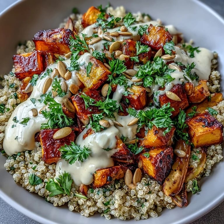 Pin It There's something deeply satisfying about the earthy sweetness of perfectly roasted root vegetables. This vibrant bowl celebrates the humble carrot, beet, turnip, and parsnip—transforming them through the magic of high-heat roasting into caramelized morsels of flavor that pair beautifully with nutty quinoa and a silky tahini drizzle.